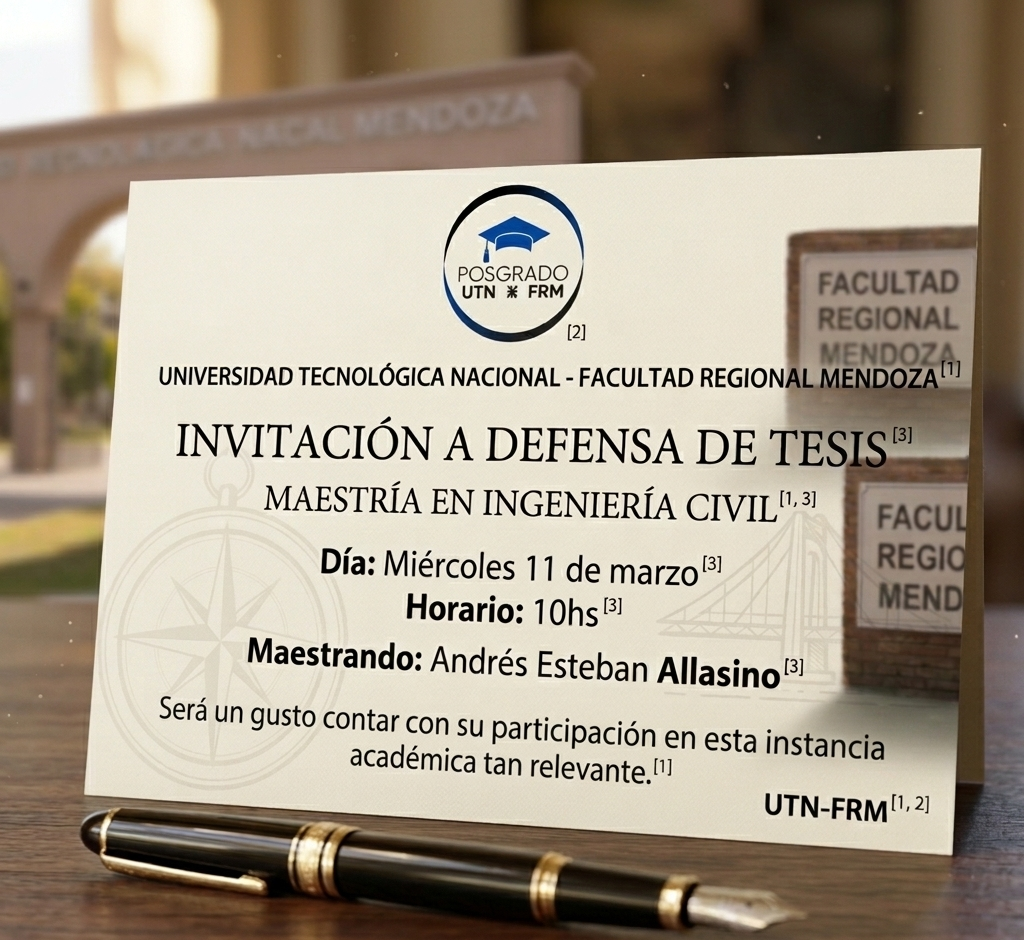 Por medio de la presente, tenemos el agrado de invitarlos a la Defensa de Tesis correspondiente a la Maestría en Ingeniería Civil de la Universidad Tecnológica