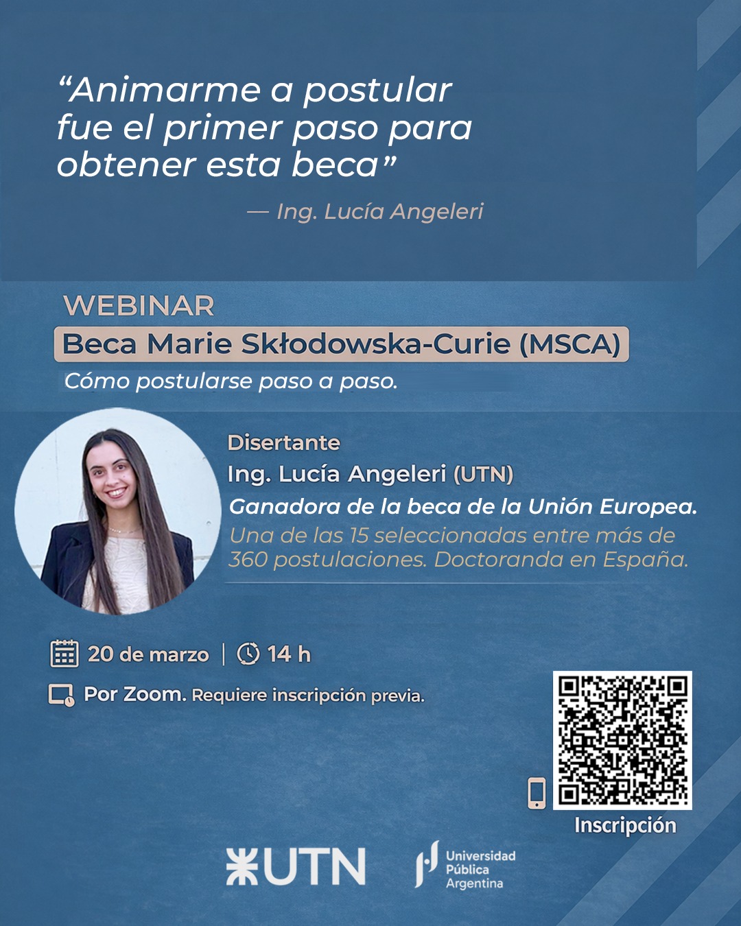 Beca Marie Skłodowska-Curie Actions (MSCA) Webinar | Experiencias para nuevas postulaciones La Ing. Lucía Angeleri (UTN) fue una de las 15 personas seleccionadas entre más de